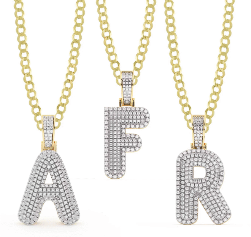 Diamond Bubble Initial Letter Necklace Solid 10K Yellow Gold
